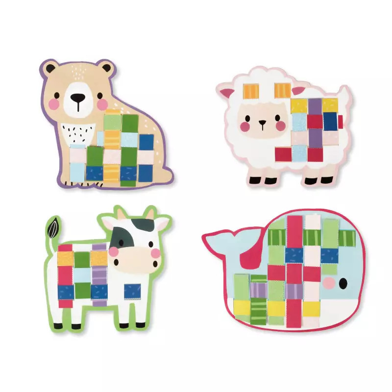 A készlet tartalmaz egy műanyag ollót, amely a kicsik számára is biztonságos, és amivel felvághatják a 10 db mintás lapot, így gyakorolva az ollóhasználatot, valamint 8 papírfigurát. A papírcsíkok fűzögetésével a gyerekek izgalmas mintákat adhatak az állatfiguráknak, így fejlesztve kézügyességüket, koncentrációjukat és kreativitásukat.