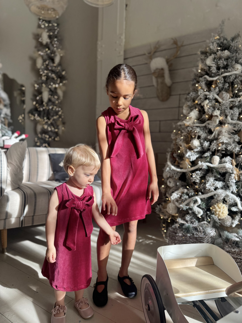 Egyszerre elegáns és játékos, tökéletesen tükrözi a közös ragyogásotokat. Az anyaga kellemes tapintású és bőrbarát, így kényelmes mindkettőtök számára, akár egy ünnepi vacsorán, akár egy családi fotózáson viselitek.