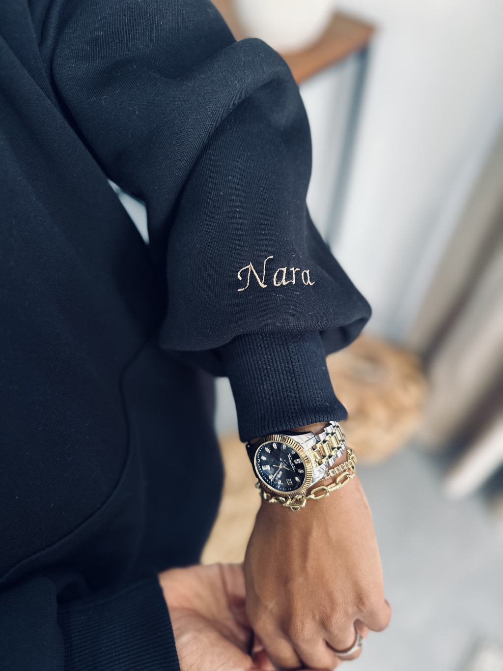 A fekete szett klasszikus, modern megjelenést biztosít, amely könnyedén kombinálható más ruhadarabokkal is. Az egyedi feliratoknak és a monogramoknak köszönhetően pedig garantáltan nem fogtok egyformák lenni a tömegben.