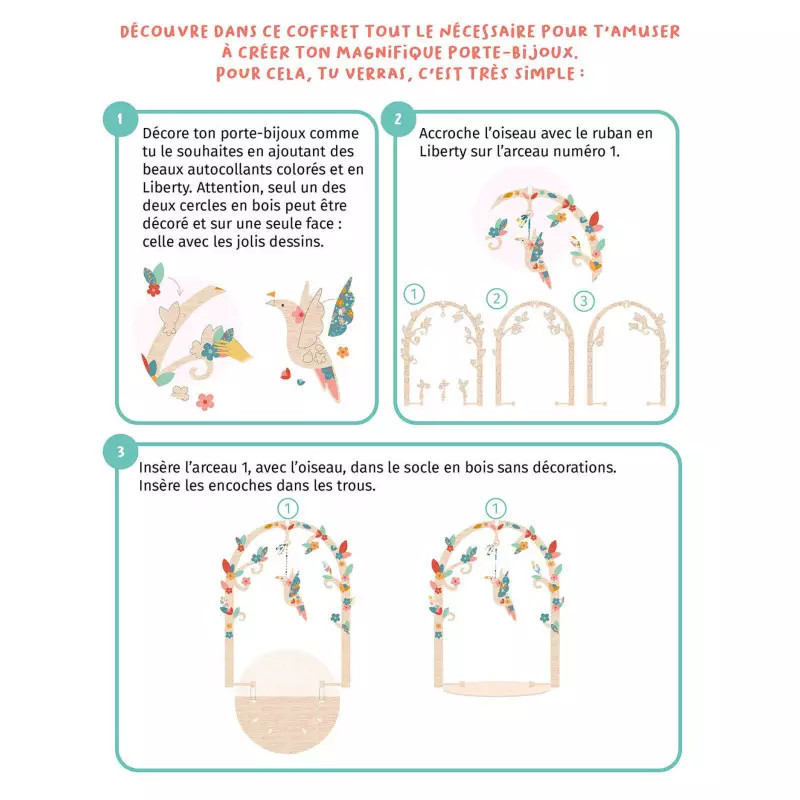 Építsd meg és matricázd fel saját, fából készült egyedi ékszertartódaz az Auzou új DIY készletével!Az öntapadós mintás szövetmatricákkal meseszép módon dekorálhatod a fa elemeket, melyeket azután összeillesztve édes kis ékszertartó állványt kapsz!