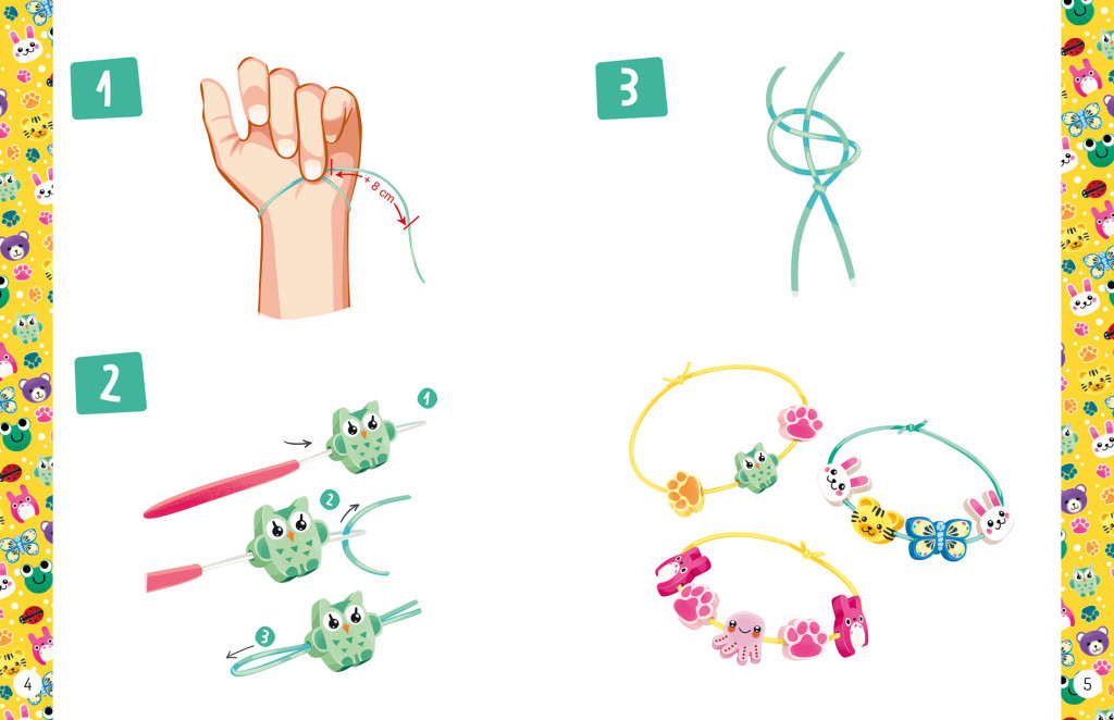 Ezzel a készlettel aranyos állatos karkötők készíthetők 100 különböző formájú és mintájú polimer gyöngyből és rugalmas gumi fonalból! Az Auzou márka új készletében található könnyen felfűzhető gyöngyök végtelen számú alkotási lehetőséget biztosítanak!