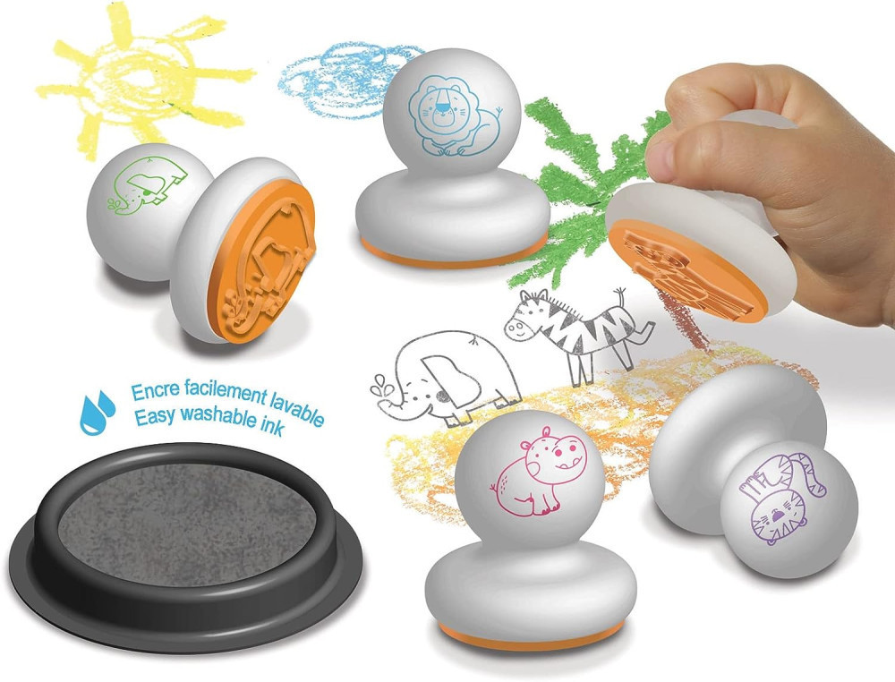 Ez a készlet lehetővé teszi a kisgyermekek számára, hogy felfedezzék a a szórakoztató nyomdázást, valamint fejleszti a finommotoros készséget.