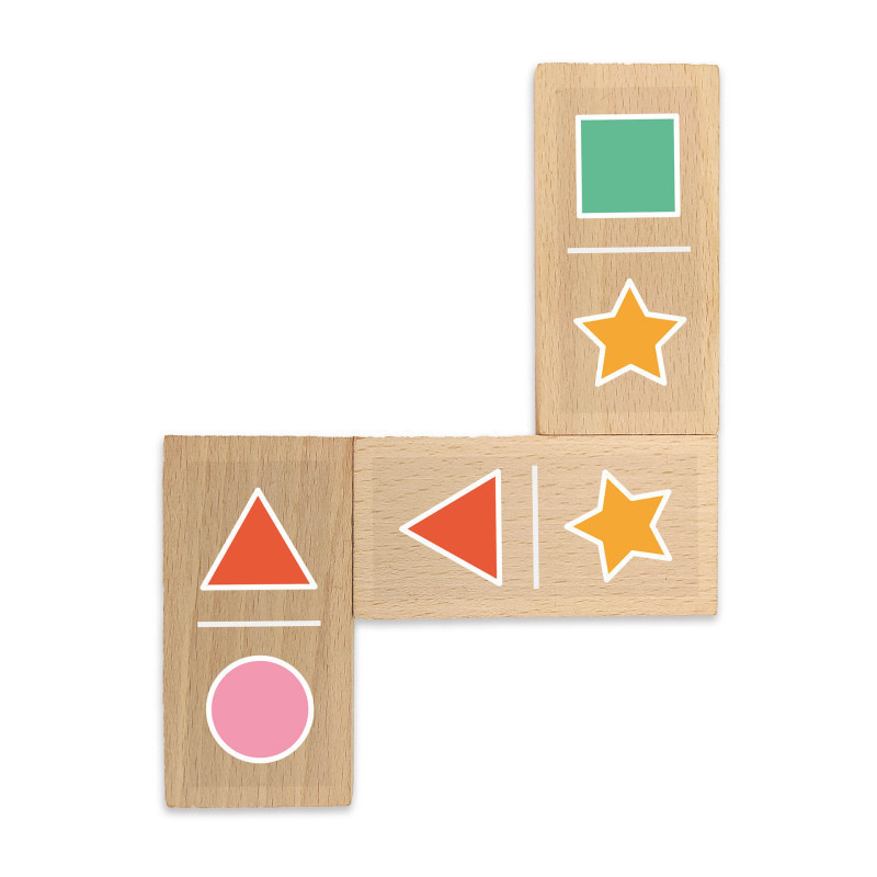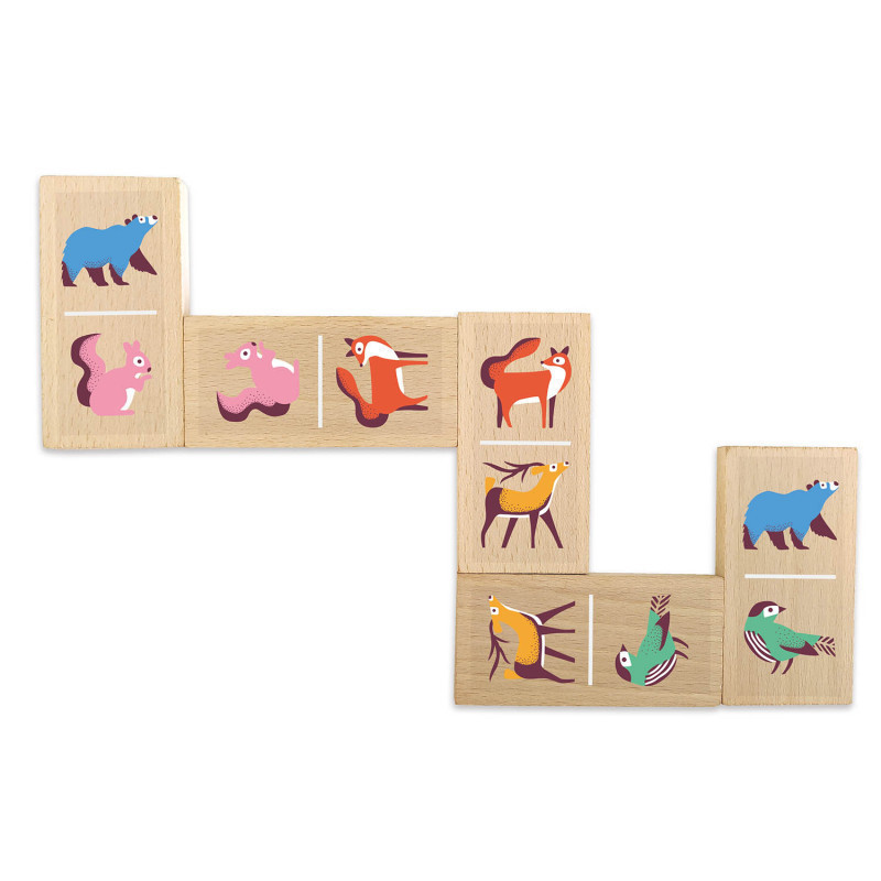 Különleges fa dominó játék, amely fejleszti a megfigyelést, a logikát és segít megismerni az állatokat, formákat és színeket. A dominó készlet natúr fából készült és a kicsikre vár a feladat, hogy felmatricázzák a két oldalára a mintákat. Egyik oldalára gyönyörű állatok illusztrációi kerülnek, melyeket Nadia Taylor illusztrátornak köszönhetünk, a másik oldalára pedig színes alakzatok ragaszthatók, így kétféle képpen játszható a játék.