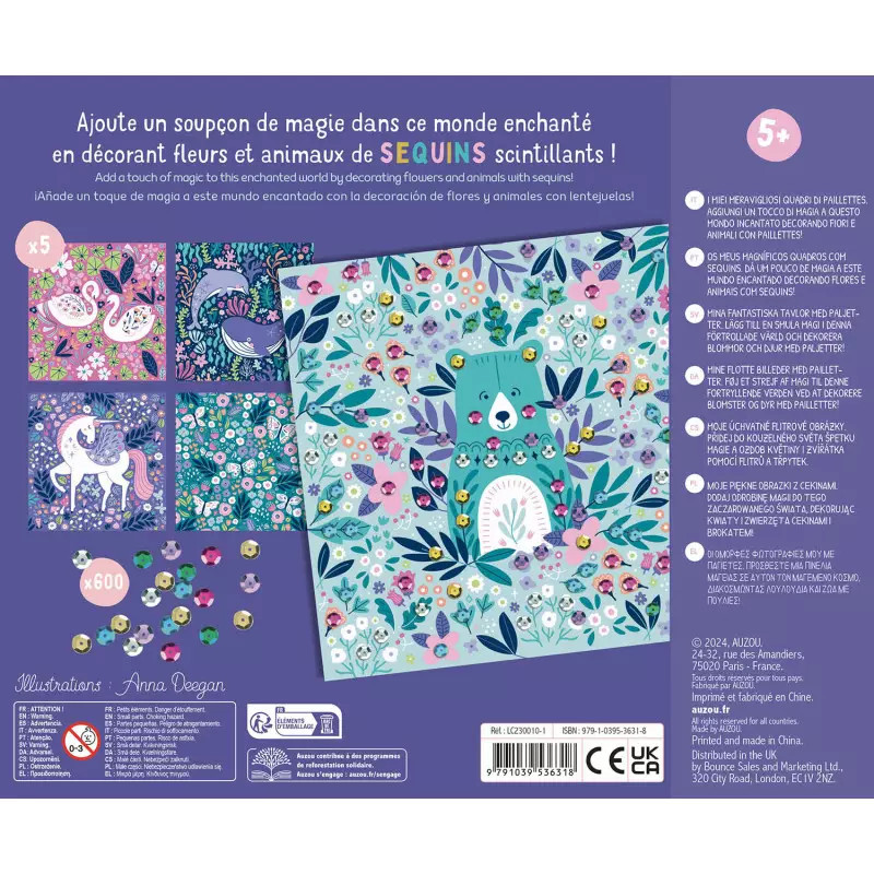Készíts flitteres képeket az Auzou új, varázslatos készletével! A csomagban 5 öntapadós képet találsz, melyekre a 600 db színes flittert felragaszthatod. Meseszép grafika és különleges kreatív technika az Auzou márkától!