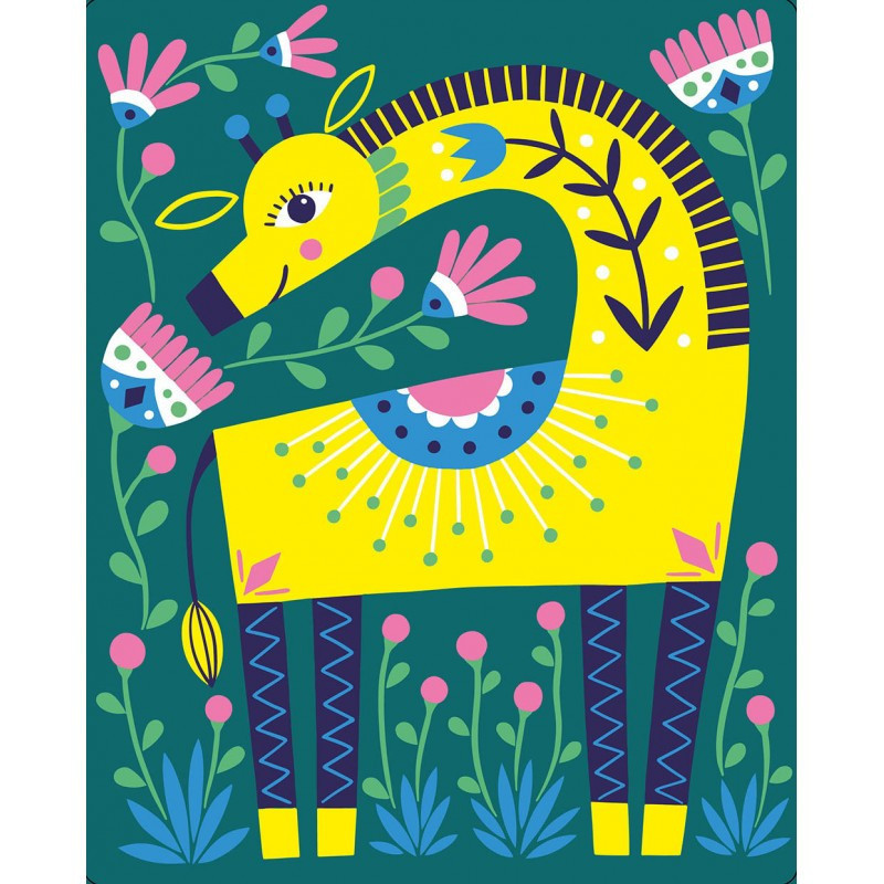 Díszíts ki 8 festményt a 6 tubus színes homokkal! Ehhez csupán le kell húzni a ragasztott részeket majd a ceruza segítségével rászórni a választott színt. Egyszerű és szórakoztató játék, mely fejleszti a gyerekek kézügyességét.