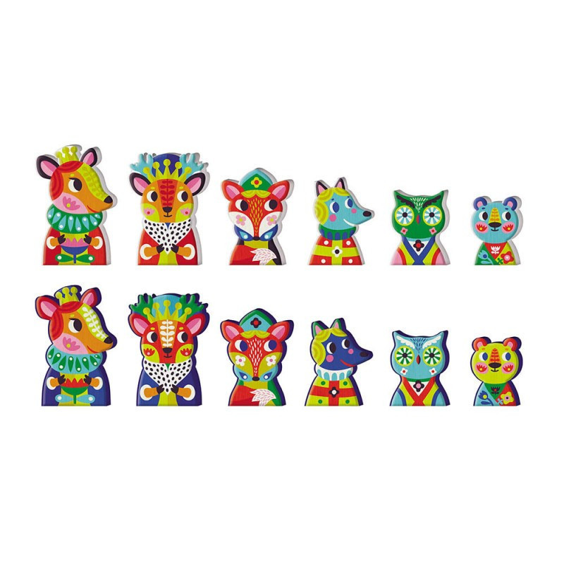 Kétoldalas sakktábla állatfigurákkal Auzou