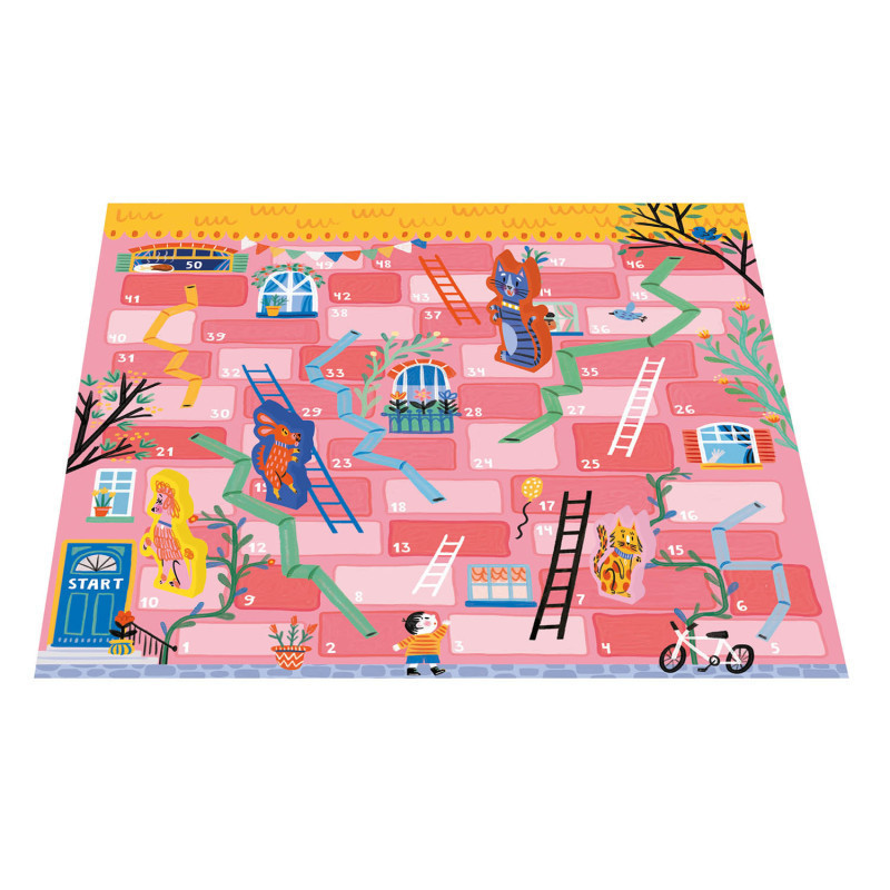 Fedezd fel ezt a klasszikus kígyók és létrák társasjátékot Sophie Beer rajzaival újragondolva. A játéktábla 2 oldalas, ezáltal két különböző nehézségi szintet játszhatnak a gyerekek. Az egyik oldalon 50-ig, a másikon 100-ig vannak megjelenítve a számok.