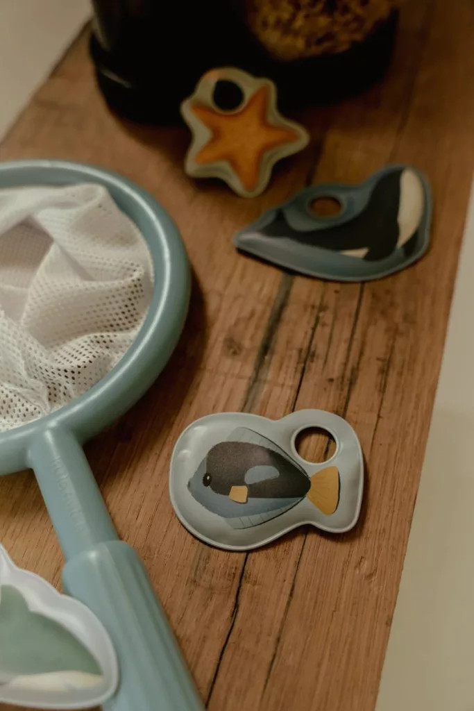 Készen állsz egy izgalmas víz alatti kalandra? Ezzel a színes horgászjátékkal a gyerekek szórakozva fejleszthetik kézügyességüket és koncentrációjukat. A szett tartalmaz egy horgászbotot, egy merítőhálót és 8 aranyos, kifogható tengeri figurát.