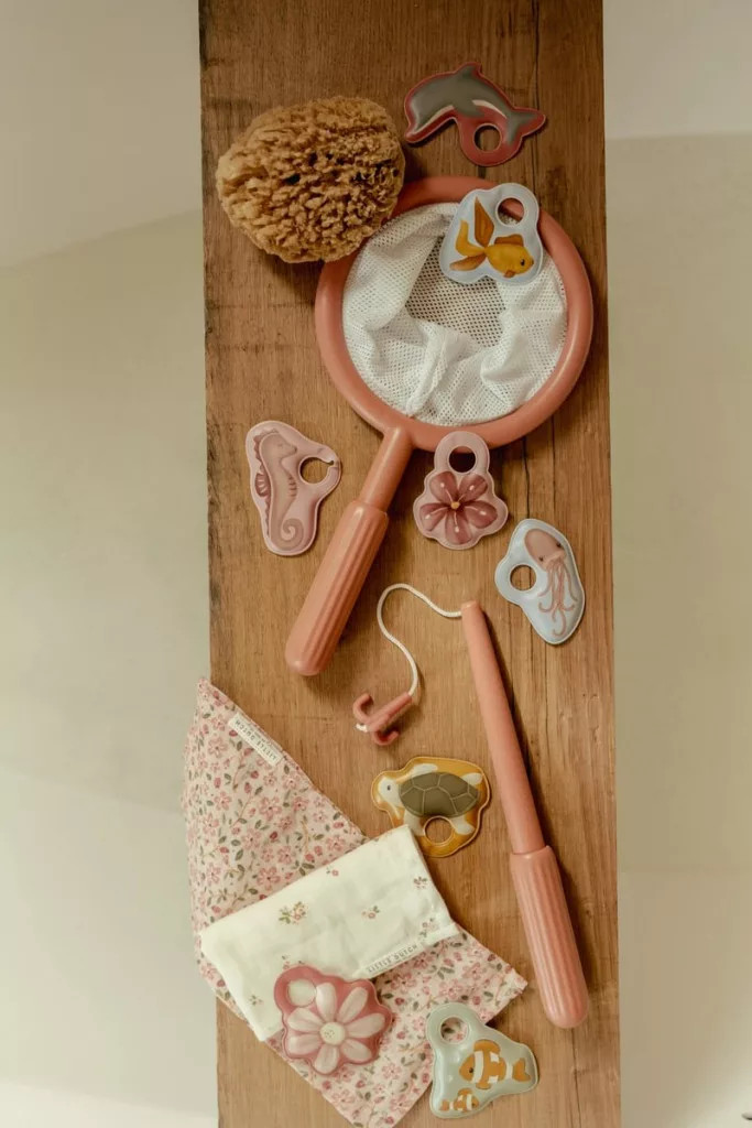 Ezzel a mókás Little Dutch horgászjátékkal indulhat a víz alatti kaland! A játék nemcsak szórakoztató, hanem fejleszti a gyermekek finommotorikáját és koncentrációját is. A szett tartalma: egy horgászbot, egy merítőháló és 8 aranyos kifogható figura.