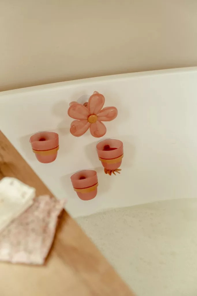 Végtelen pancsolós móka a Little Dutch rózsaszín fürdőjátékszettel! Ez az aranyos, 4 részes szett igazi élménnyé varázsolja a fürdést! A tapadókorongos elemek között találsz egy virág alakú forgó kereket, két fürdőpoharat és egy öntőcsészét. Csak rögzítsd őket a kád vagy a zuhany falára, és kezdődhet a játék – öntsd a vizet, és figyeld, ahogy a kerék vidáman pörög!
