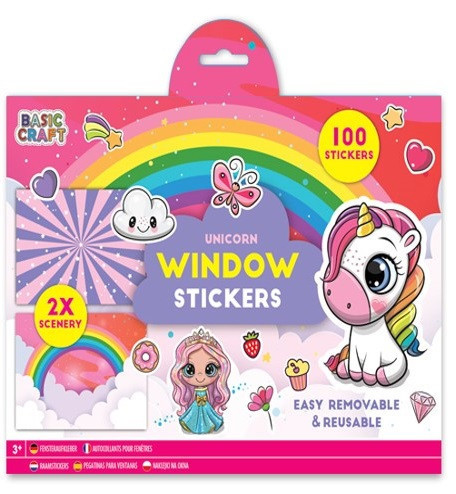 Moxy újrahasználható 100 db-os ablakmatrica 2 db háttérrel, Unikornis Grafix