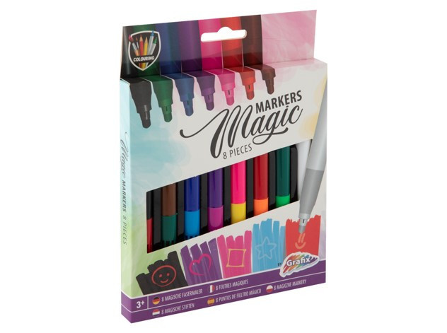 8 db-os varázsfilctoll készlet a Grafix márkától! Rajzolj valamit az átlátszó filctollal a papírra, majd satíozd át az egyik színnel a felületet és láthatod, hogy előtűnik az általad létrehozott minta! Varázslat egy szempillantás alatt! Az alkotásnak pedig csak a képzelet szabhat határt!
