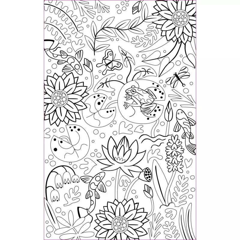 15 lapos nagyméretű színező könyv kemény borítással és 5 színű egymásba pattintható neon filctollal.
