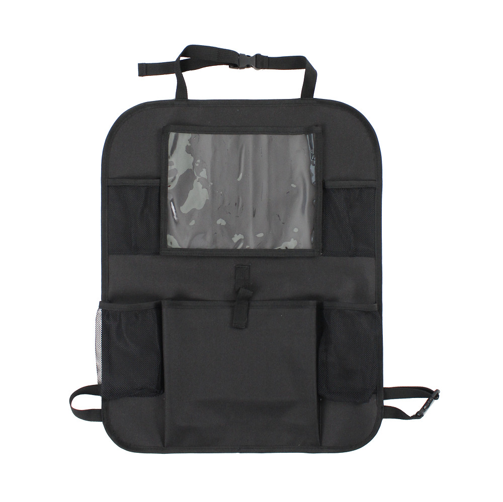 Az univerzális rögzítésnek köszönhetően szinte minden autóval kompatibilis. A rendszerező a táblagépzseb mellett 4 hálós zsebet és egy extra nagy központi rekeszt is tartalmaz. A mélyebb alsó zsebek alkalmasak egy vizes palack tárolására, a felső kisebb zsebek pedig különböző apróságok számára. A nagy rekeszben több játék is elfér.