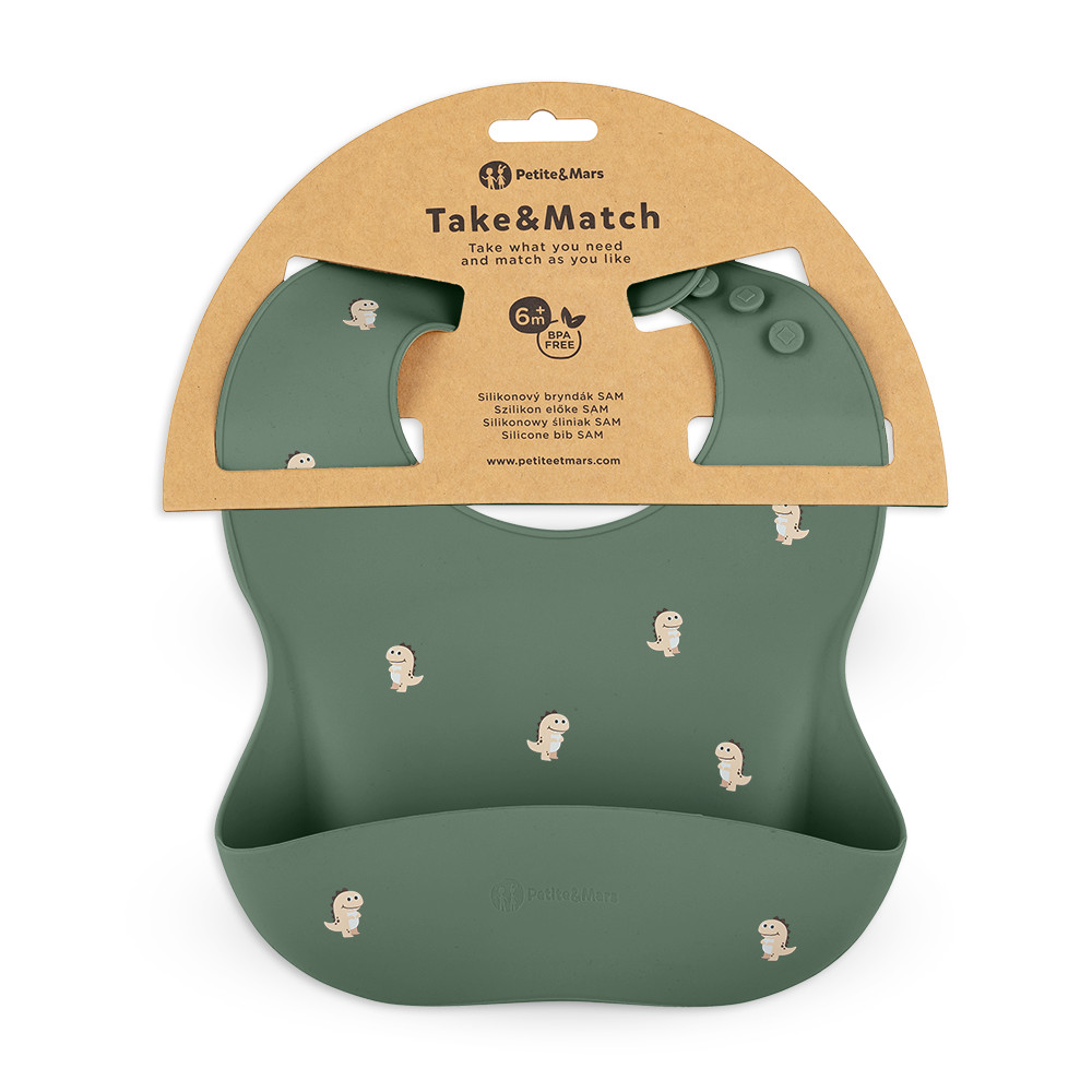 PETITE&MARS Szilikon előke Take&Match Green Dinos 6m+