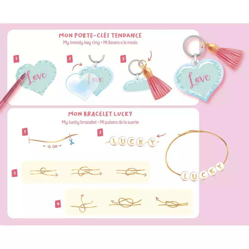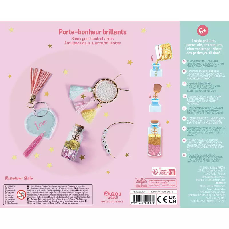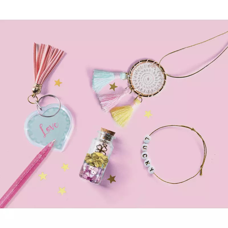 Ebben a dobozban mindent megtalálsz, amire szükséged van 4 csillogó színű szerencsehozó talizmán elkészítéséhez: