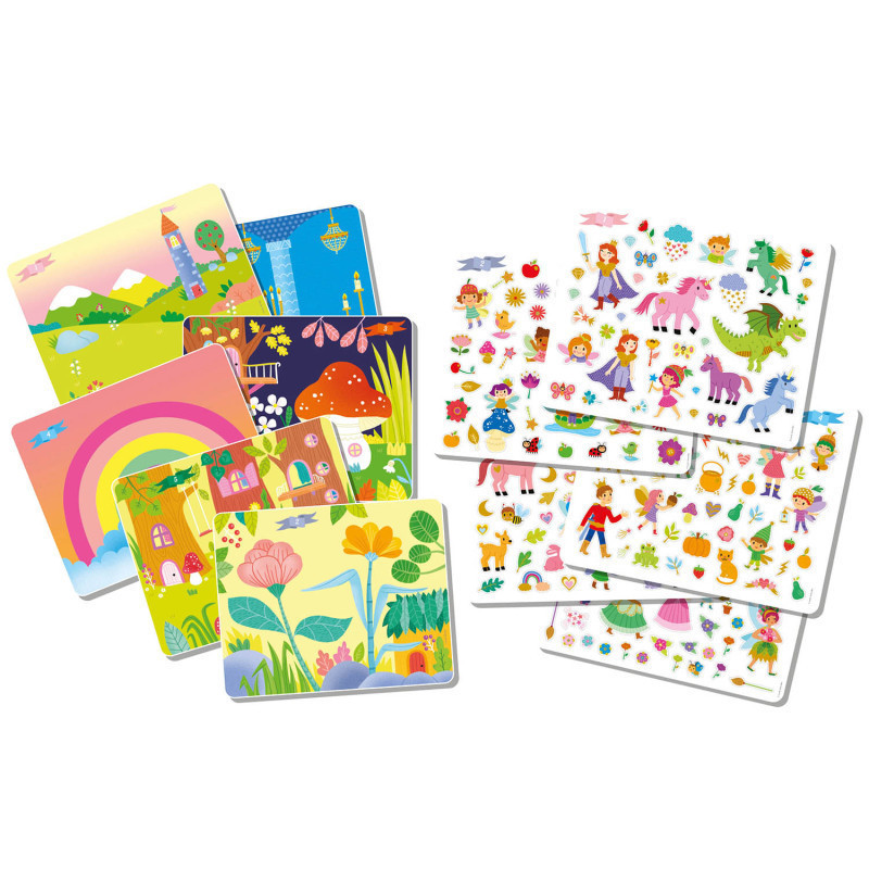 A csomag 6 db hátteret és 200 db áthelyezhető (némelyik fényes felületű), újrafelhasználható tündéres matricát tartalmaz, mellyel a gyerekek jól szórakozhatnak, miközben történeteket kreálhatnak. Kiváló szórakozás a kisebb gyermekek számára.