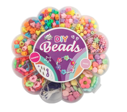 Szivárványos és pasztell színű gyöngyfűző készlet virág alakú dobozban Grafix